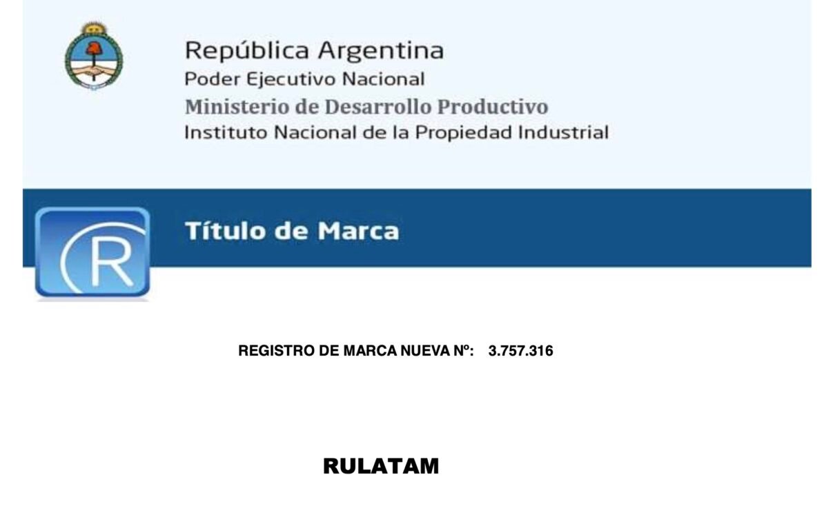 RULATAM создан как региональное расширение RuArgentina — платформа, объединяющая миграционные, административные и стратегические решения сразу для нескольких стран Латинской Америки, включая Аргентину, Уругвай, Бразилию и Парагвай. Регистрация в INPI закрепляет исключительные права на использование бренда и формализует его место в экосистеме проектов RuArgentina.