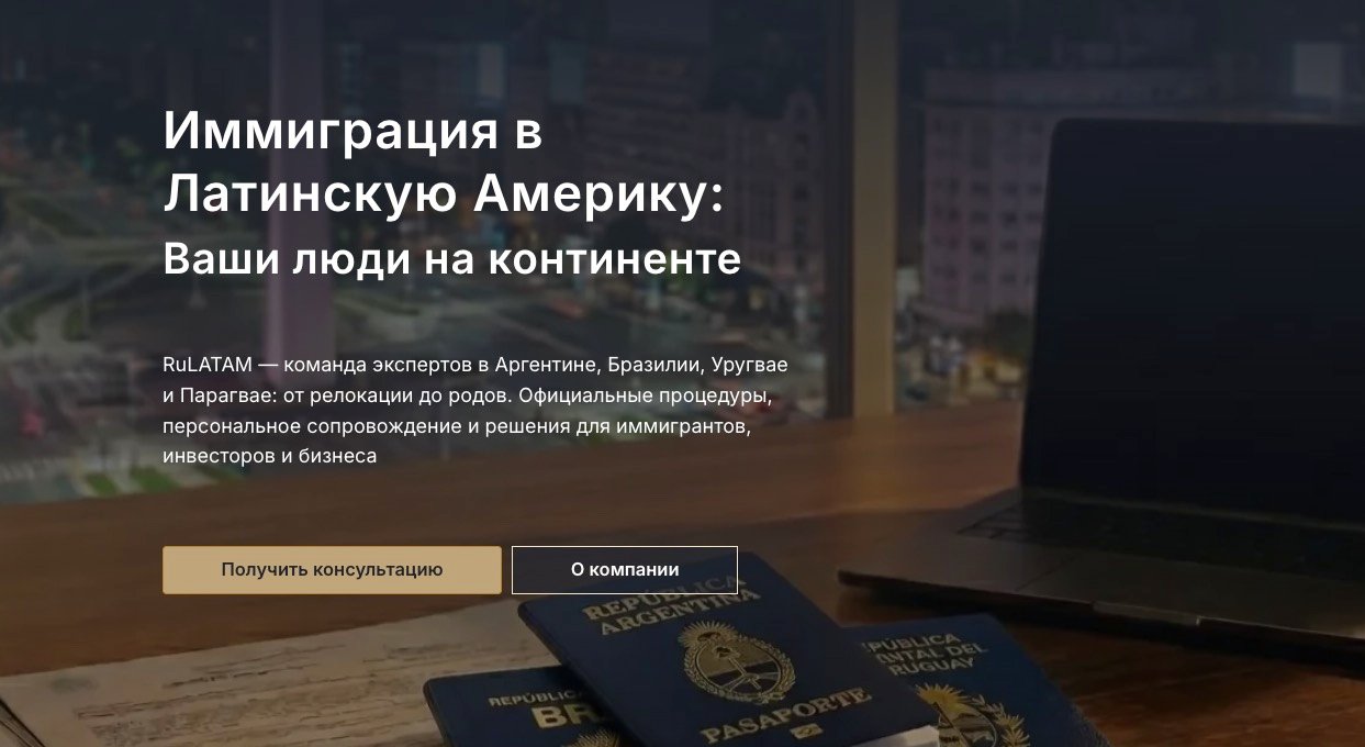 В настоящее время RuLATAM оказывает услуги по Иммиграции в Бразилию, Услуги по сопровождению родов в Бразилии, услуги по иммиграции в Уругвай, услуги по получению ВНЖ Парагвая, а также сопутствующие услуги по иммиграции в Латинскую Америку.